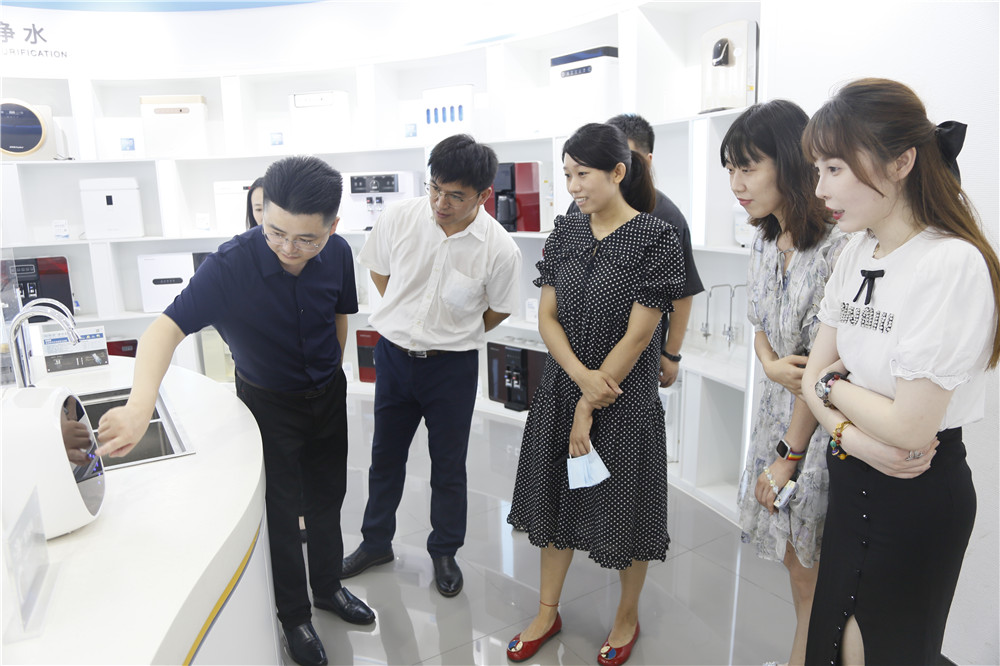 一行領(lǐng)導(dǎo)先后參觀了榮事達(dá)智能化生產(chǎn)車間和智慧水世界展廳,了解榮事達(dá)企業(yè)綜合實力及十大水處理產(chǎn)業(yè)具體發(fā)展?fàn)顩r,現(xiàn)場體驗了企業(yè)最新研發(fā)定制產(chǎn)品與自主開發(fā)的物聯(lián)網(wǎng)校園智慧管理系統(tǒng),并為榮事達(dá)行業(yè)領(lǐng)先的技術(shù)實力點贊。