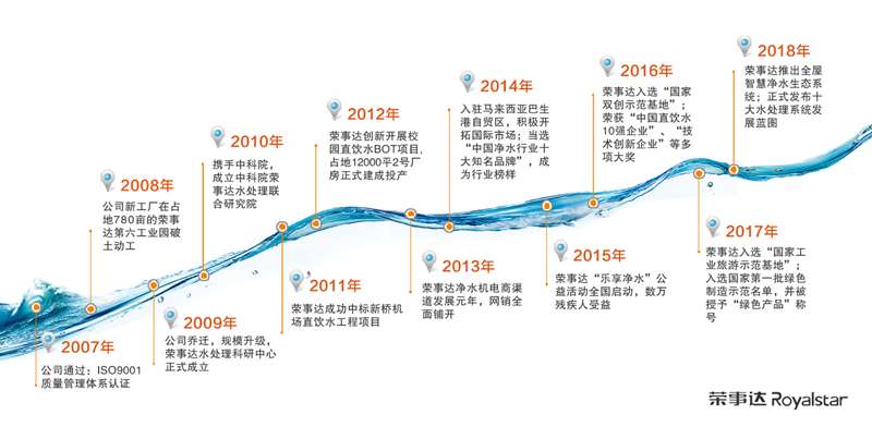 20185月,榮事達(dá)正式發(fā)布十大水處理系統(tǒng)發(fā)展藍(lán)圖,全面布局全屋智慧凈水、校園直飲水、城市公共飲水、社區(qū)智慧飲水、農(nóng)村安全飲水、工業(yè)污水處理、生活污水處理、景觀水處理、醫(yī)療用水處理、海水淡化十大領(lǐng)域。