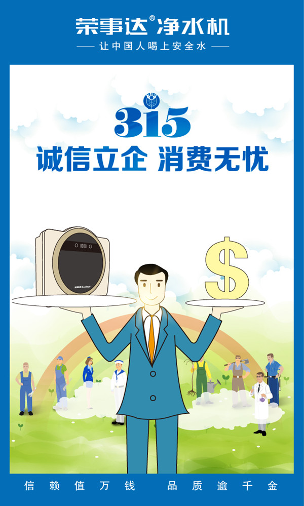 榮事達(dá)肩負(fù)保障飲水安全的使命,將大企業(yè)大品牌的責(zé)任心落在實(shí)處,以誠信立企,以誠信塑品牌,在推動(dòng)創(chuàng)造誠實(shí)守信、公平有序的市場(chǎng)環(huán)境之中,成就企業(yè)價(jià)值!