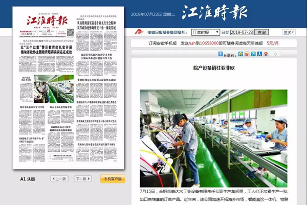 江淮時(shí)報(bào) 《皖產(chǎn)設(shè)備銷往亞非歐》