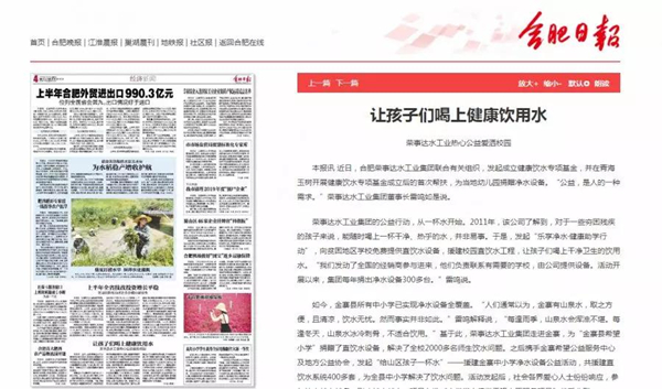合肥日?qǐng)?bào) 《讓孩子喝上健康飲用水》