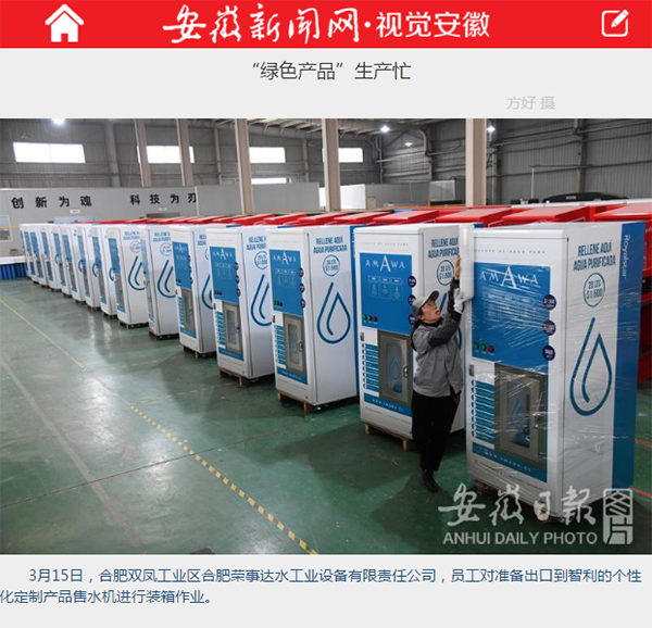 昨日,安徽日報報業集團旗下安徽新聞網記者走進合肥榮事達水工業設備有限責任公司,用鏡頭記錄下了凈水生產車間內趕出口訂單的忙碌景象。自今年開工以來,榮事達快速的發展步伐吸引了安徽日報、工商導報、萬家熱線、安徽財經網、今日頭條、江淮時報、歐洲時報、安徽商報等各大主流媒體對企業復工復產和外貿出口情況進行了集中宣傳報道。