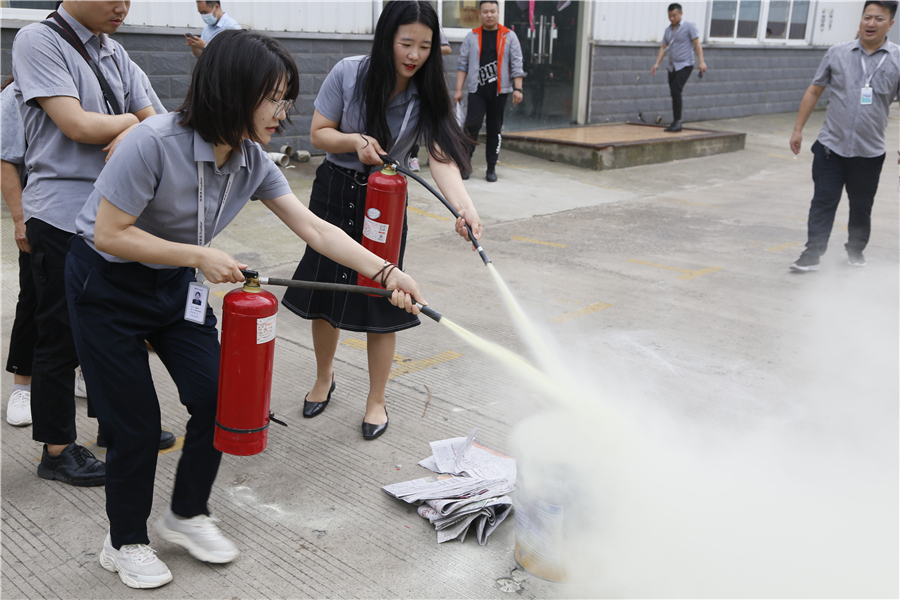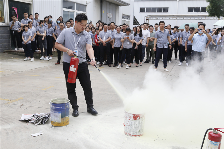 滅火演習現(xiàn)場,相關人員就消防器材使用規(guī)范,進行了詳細的講解與演練。在實操前先由消防指導員進行了滅火器的使用方法、 步驟和滅火姿勢等教學,然后安排員工現(xiàn)場實操滅火。集團各部門員工爭先拿起滅火器按照步驟進行實操滅火,反應熱烈。