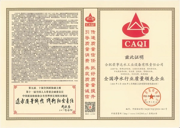 傳遞質(zhì)量信任,引導(dǎo)質(zhì)量消費(fèi)。 在由中國(guó)質(zhì)量檢驗(yàn)協(xié)會(huì)主辦的2024年“3·15”產(chǎn)品和服務(wù)質(zhì)量誠(chéng)信承諾的主題活動(dòng)中,榮事達(dá)水工業(yè)公司憑借卓越的產(chǎn)品品質(zhì)及良好的社會(huì)形象,獲得協(xié)會(huì)以及權(quán)威專家的一致認(rèn)可,榮膺 “全國(guó)產(chǎn)品和服務(wù)質(zhì)量誠(chéng)信示范企業(yè) ”“全國(guó)凈水行業(yè)質(zhì)量領(lǐng)先企業(yè)”“全國(guó)凈水行業(yè)質(zhì)量領(lǐng)先品牌”“全國(guó)產(chǎn)品和服務(wù)質(zhì)量誠(chéng)信品牌”“全國(guó)質(zhì)量檢驗(yàn)穩(wěn)定合格產(chǎn)品”“全國(guó)質(zhì)量檢驗(yàn)信譽(yù)保障產(chǎn)品”“全國(guó)消費(fèi)者質(zhì)量信譽(yù)保障產(chǎn)品 ”多項(xiàng)榮譽(yù)。