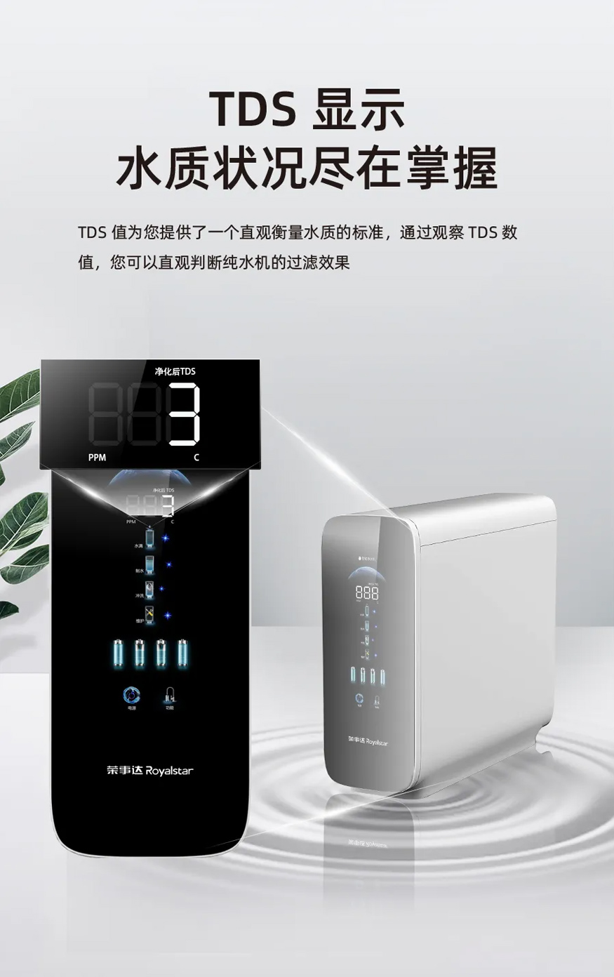 “這水過濾得干凈嗎?濾芯是不是該換了?”每次接水時的小嘀咕,榮事達早就替你想到了。新品配備的智能大屏,就像個透明的“水質管家”,機器運行狀態、實時水質情況一目了然。尤其搭載的TDS顯示功能,讓抽象的“干凈”有了具體的答案。有了它,給寶寶沖奶更踏實,給老人泡茶更安心。