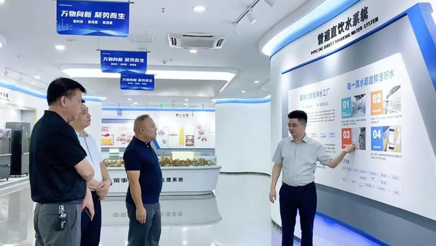白冰董事長一行認(rèn)真聽取講解,還就榮事達(dá)管道直飲水項(xiàng)目的設(shè)備性能、技術(shù)原理等細(xì)節(jié)與陪同人員深入交流。榮事達(dá)管道直飲水項(xiàng)目是針對社區(qū)、學(xué)校、醫(yī)院、企事業(yè)單位及工廠等場景,提供定制化飲水模式,涵蓋社區(qū)智慧水站、校園智慧凈水屋、高端直飲水設(shè)備及變頻供回水系統(tǒng),旨在為民眾打造便捷、高端、健康的飲水服務(wù)。