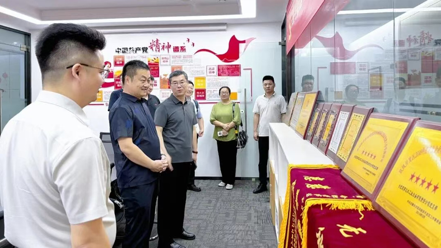 在智慧水世界展廳,總經(jīng)理王悅生向領(lǐng)導(dǎo)一行詳細(xì)介紹集團(tuán)的發(fā)展歷程、公益貢獻(xiàn)及黨建引領(lǐng)下的企業(yè)文化等。