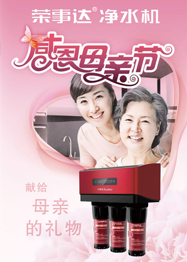 時(shí)光流逝,歲月催老,家人的健康是每個(gè)子女的心愿。這個(gè)母親節(jié),為親愛的媽媽送上一臺(tái)優(yōu)質(zhì)貼心的凈水機(jī)吧,在傳遞濃濃情意的同時(shí),為她們締造理想、舒心的飲用水生活!